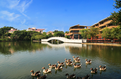 学校位于广东省广州市黄埔区广州中新知识城内,交通便利,地铁直达校门口。校园环境优美,空气清新,绿树成荫,湖光山色,鸟语花香,是读书治学、成长成才的理想园地。学校形成了以经济学、管理学为主,文学、法学、工学、艺术学协调发展的学科专业布局,电子商务学科获得广东省特色重点学科立项建设,共开设29个本科专业,全日制在校学生17000多人。