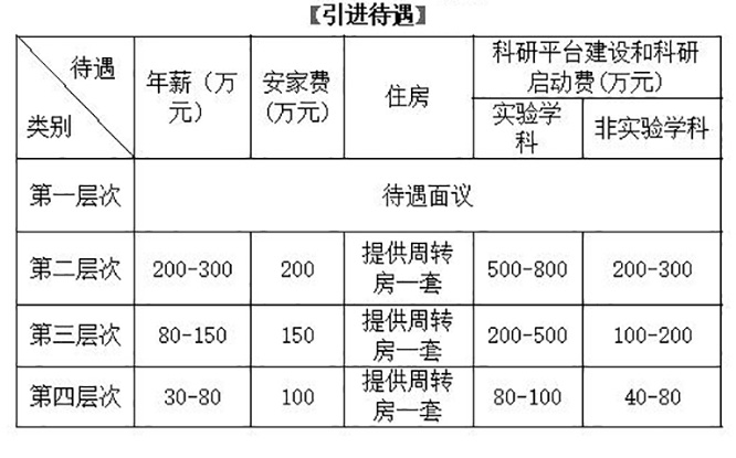 注:高层次人才除全职引进外,还可以柔性引进,具体待遇视在校工作时间、工作业绩等商定,“一人一策、一事一议”。