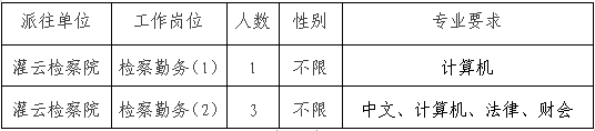 因工作需要,灌云汇之通人力资源有限公司面向社会招聘检察勤务人员4名,派遣到灌云县人民检察院工作,具体招聘事项公告如下: