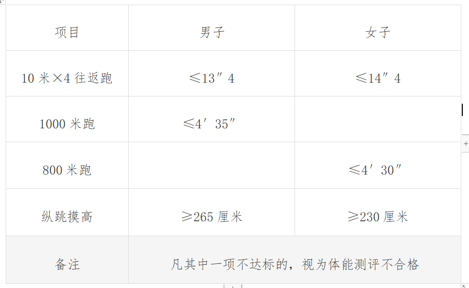 (三)体能测评项目和标准按照黑龙江省公务员考试网公布的《2023年度黑龙江省公务员录用考试公检法司等相关部门特殊职位的体能测评项目和标准》相关标准执行。体能测试不合格,取消面试资格。